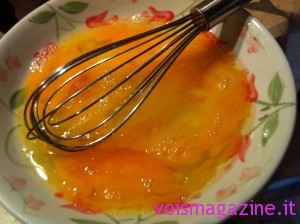 Mescolare con un cucchiaio di legno fino a qundo il composto nn sarà liscio senza grumi.Infine aggiungere le uova sbattute precedentemente pochi secondi e versare il composto in una teglia precedentemente imburrata e infarinata.