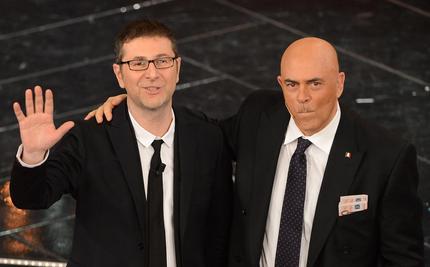 A placare gli animi del momento più caldo di questa prima serata è intervenuto patron Fazio che ha cercato di spiegare al pubblico che il comico faceva solo il suo lavoro. Lo stesso Crozza visibilmente in difficoltà ha poi cercato di riprendere il suo intervento, riuscendo solo dopo la seconda uscita del presentatore. Dopo Marco Mengoni, fedele al suo stile con la sua pronuncia quasi “brithish” del suo italiano e la sua voce bellissima, si sono esibiti Raphael Gualazzi, Daniele Silvestri, Simona Molinari e Peter Cincotti, Marta sui Tubi, Maria Nazionale e Chiara Galiazzo. A comunicare le canzoni che hanno passato il turno si sono invece alternati sul palco dopo Marco Alemanno, Ilaria D’Amico , Valeria Bilello, la tennista Flavia Pennetta, Benedetta e Cristina Parodi, Vincenzo Montella e il pallanuotista Stefano Tempesti. Presentati anche i brani degli otto Giovani, ovvero Andrea Nardinocchi, Antonio Maggio, Blastema, Il Cile, Ilaria Porceddu, Irene Ghiotto, Paolo Simon. Per la parte riservata alle ‘vecchie glorie’ del festival ad esibirsi in questa prima serata è stato Toto Cutugno con una nuova versione de “l’Italiano” . Nella serata di oggi i big che saliranno sul palco saranno, in ordine d’esibizione: Modà , Malika Ayane , Simone Cristicchi, Almamegretta, Max Gazzè, Annalisa ed Elio e le Storie Tese, mentre gli annunciatori saranno Max Biaggi , Eleonora Pedron, Neri Marcorè Jessica Rossi, Filippa Lagerback, la nazionale di fioretto femminile, lo chef Carlo Cracco e Roberto Giacobbo. Dei giovani, solo 4, saliranno sul palco e le canzoni saranno votate con sistema misto, televoto e Giuria della Stampa. Gli ospiti della serata saranno Bar Refaeli, i Ricchi e Poveri, il cantautore Asaf Avidan, Carla Bruni e Beppe Fiorello.