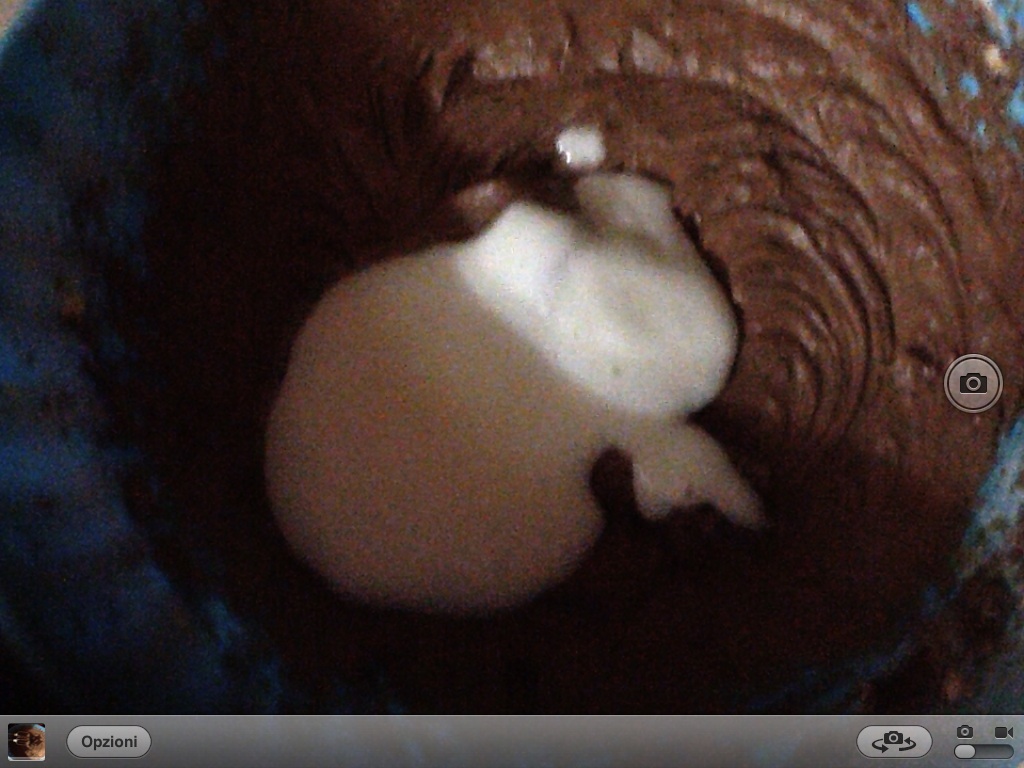 Unire ai tuorli montati la farina e il cacao setacciati. Mescolare il latte con il lievito fino a quando diventa spumoso.
