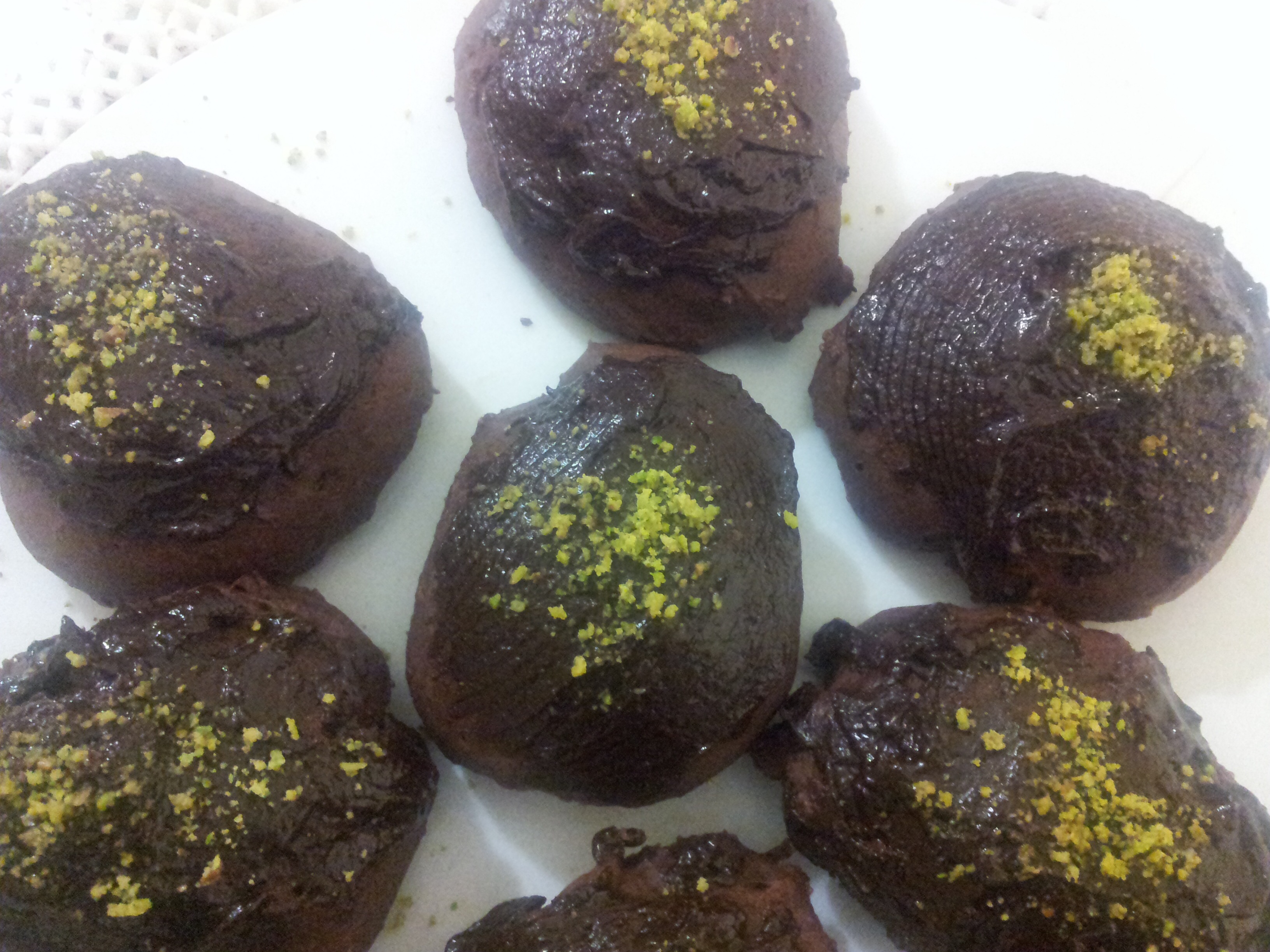Sfornare le rame, lasciarle raffreddare e dopo ricoprirle di glassa. Decorare subito con i pistacchi tritati. Servire dopo qualche ora.