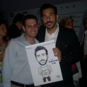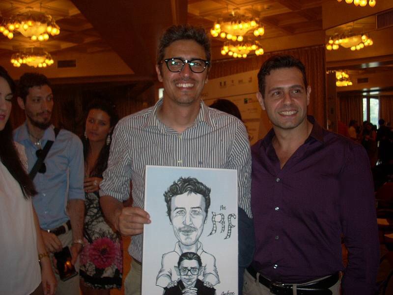 A lui va la prima vignetta da parte di Vois, consegnata durante un’afosa conferenza stampa fra risate, entusiasmo e la sua amichevole disponibilità. Il secondo omaggio illustrato tocca invece ad un solare (e assai sensibile nei confronti dei giornalisti precari) Paolo Virzì. Sorriso grande e disponibilità alle stelle per un regista a cui auguriamo di volare ancora alto col suo “Capitale Umano”. Ultimo ad essere omaggiato l’indaffaratissimo Edoardo Leo, arrivato in serata direttamente dal set del suo terzo film. Una vignetta finita in tempi strettissimi che gli consegno durante il cocktail al Timeo. “Ho visto il film solo ieri sera!” gli confesso (è la verità). “E quando l’hai fatta questa?” replica lui. “ Stamattina”. “Ma sei un grande!” mi risponde. E giù foto e ringraziamenti. Non mollerà quel disegno nemmeno dopo la (lunghissima) premiazione. Perfino alla cena tenutasi tardi alla “Baronessa” lo terrà arrotolato dentro una tasca della giacca. Un mito. Che questi omaggi alla fine non siano graditi (almeno) quanto i Nastri stessi?