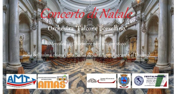 CATANIA: Mercoledì 23 Dicembre, alle ore 18:00, nella bellissima chiesa della Badia di Sant’Agata, (accanto al Duomo), l’orchestra sinfonica “Falcone Borsellino”, terrà il concerto di Natale.