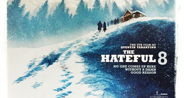 La sequenza sui titoli di testa non lascia scampo: la macchina da presa inquadra un Cristo di legno coperto di neve e si muove lentamente fino a rivelare una distesa innevata, gelida e quasi anonima. Fin troppo facile intuire l’ovvio: Dio non abita più qui. La Terra (il Wyoming ma potrebbe trattarsi di qualsiasi altro non-luogo della Frontiera) è solo un affare di uomini e la diligenza che sta sopraggiungendo sta lì per ricordarcelo. Sembra un incipit alla Joel e Ethan Coen ma in realtà è Tarantino. L’ottavo Quentin Tarantino per la precisione, cineasta coltissimo e onnivoro che da oltre vent’anni maneggia il cinema con la devozione dei “classici” e l’irreverenza di un nerd, elevando sempre più in alto, pellicola dopo pellicola, la sua infinita e autoreferenziale Babele di parole e immagini. Dal pulp al noir, dallo slasher comico al manga-vengeance (con licenza inventando), passando per lo storico (anche qui reinventato) e, naturalmente, attraverso il western. Genere quest’ultimo che ritorna oggi, dopo la rilettura in chiave politico-schiavista di “Django Unchained”, con “The Hateful Eight”, opera forse tra le più radicali e rischiose di tutta la filmografia del nostro Mr. Brown. Ma siamo al suo personale 8 (e mezzo, se si considera la metà grindhouse di “A prova di morte” e si soprassiede allo scherzetto di neanche mezz’ora di “Four Rooms”) e qualche rischio è lecito prenderselo. Così “The Hateful Eight” (titolo meravigliosamente assonante come “The 8ful Hate”), storia di otto bastardi chiusi dentro un emporio in balìa della tormenta fra inganni, doppiogiochismi e parole che deflagrano prima delle pallottole, è, giustamente, anche un inevitabile film-summa.