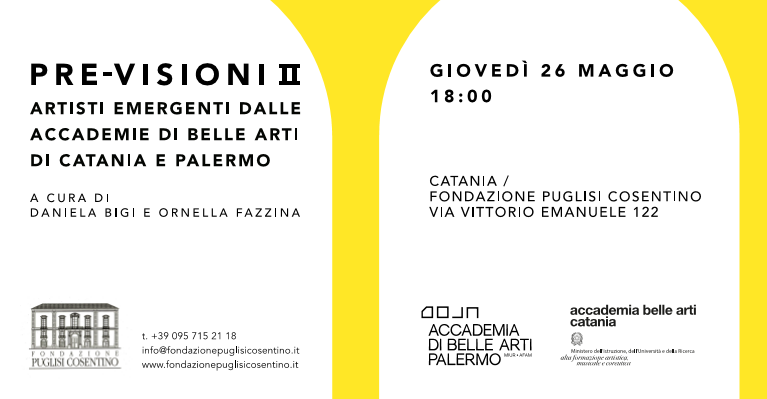 CATANIA, 27 maggio 2016 – Narrazioni intimistiche, tematiche sociali, operazioni più concettuali. Chi ha voglia di curiosare su temi, linguaggi e tecniche espressive della “meglio gioventù” delle Accademie di Belle Arti di Catania e Palermo avrà tempo fino al 10 luglio per visitare nella città etnea “PRE-VISIONI II”, la seconda indagine sui talenti emergenti contemporanei promossa dalla Fondazione Puglisi Cosentino, al primo piano dello storico palazzo Valle. Il progetto, che segue la prima edizione del 2009 organizzata a latere della mostra su Burri e Fontana, è realizzata in collaborazione con i direttori dei due istituti e con la curatela delle docenti Ornella Fazzina e Daniela Bigi. Stavolta il dialogo a distanza è con un “contemporaneo”: quel Pietro Ruffo, già proiettato da tempo sui palcoscenici internazionali dell’arte, del quale la fondazione ospita la prima antologica fino al 10 luglio.