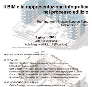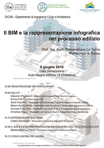 La relazione centrale – dopo l’introduzione della ricercatrice dell’Ateneo catanese Cettina Santagati – è affidata al professore associato del Politecnico di Torino Massimiliano Lo Turco, il quale interverrà sul processo di sviluppo del BIM analizzando modelli multi-dimensionali virtuali.