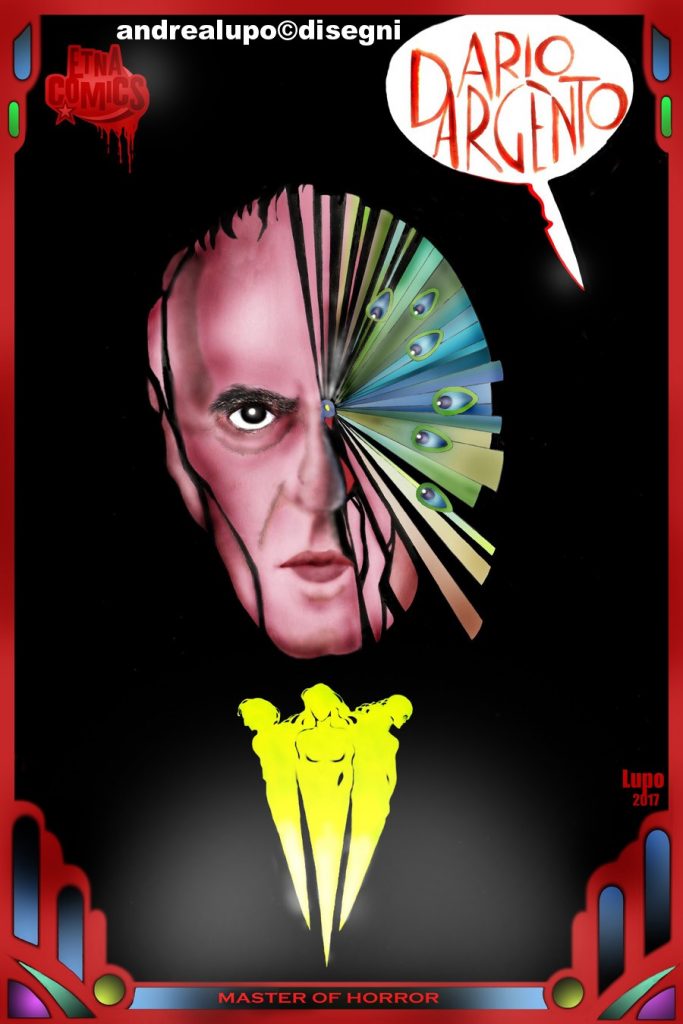 Storie di sinergie ma soprattutto cronache di futuri matrimoni che si annunciano -letteralmente sulla carta- già memorabili. Storie di un affetto, quello nei confronti del maestro, che si è rinnovato puntualmente a Etna Comics, tra i bagliori vetrati di Suspiria e l’altro suo cinema recente, quello che da tempo ha abbandonato il territorio della sperimentazione pura (ma quelli erano gli anni ’70) per abbracciare con decisione i meccanismi più schietti e spediti di una narrazione scopertamente americana (Pelts, Jenifer, Giallo). “Suspiria abitava i territori della fiaba, Inferno quelli del sogno e La Terza madre quelli dello slasher feroce. Quale linguaggio parlerà il prossimo progetto?” gli chiedo. Ammicca sorridendo, forse lieto della domanda rivoltagli e dopo pochi istanti risponde “Il prossimo potrebbe tornare a parlare il linguaggio del sogno”. La risposta è di quelle che rende felici, anche perché chi scrive ha amato “Inferno” al di sopra di tanti, comunque riconosciuti, capolavori. Perchè è specialmente quando ha dialogato con le tenebre impalpabili del sogno che il linguaggio del maestro ha trasceso il cinema per diventare l’abisso in cui tutti noi siamo precipitati. Ed è in quelle profondità che vogliamo ancora perderci. Il momento conclusivo è per gli omaggi. Dalle onorificenze ufficiali di Etna Comics consegnate da Cateno Piazza fino alla tavola minimalista su Profondo Rosso disegnata dal geniale Matteo Civaschi, autore della collana Cinemology. In mezzo a queste c’è spazio anche per la consegna di un disegno originale concepito proprio per il festival e per la proiezione speciale di Suspiria. Nell’illustrazione il volto di Dario si stempera nel proverbiale pavone del finale, mentre le sagome delle Tre Madri ammiccano dal basso assumendo le forme di lame affilate e splendenti. Argento è proprio il sinonimo di quel bagliore.